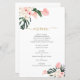 Carte de menu mariage rose tropicale