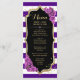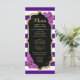 Carte de menu. Design noir violet or élégant avec dorure pailletée. Caractéristiques rayures et roses violettes. Parfait pour une fête élégante.