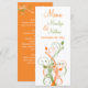 Carte de menu orange, vert et blanc à la floraison