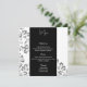 Ce modèle de carte de menu est affiché sur le papier de base avec une conception d'impression florale, script et texte standard en blanc. Couleurs Noir, Gris, Blanc Customisez les éléments du menu en cliquant sur le bouton customiser, recherchez à droite et trouvez les cases appropriées pour modifier vos informations. Je vous souhaite de bons voeux pour votre jour de mariage. Image stock
