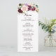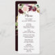 Cette carte de menu à la carte verte bordeaux à fleurs est parfaite pour un mariage rustique. Le design se compose d'élégants bouquets de fleurs dessinés à la main, verts, rousses, violets, rouges et bordeaux, inspirant la beauté naturelle. Ce menu peut être utilisé pour une réception de mariage, un dîner de répétition, une douche nuptiale ou tout événement.