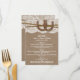 La collection rustique horseshoe est un design étonnant avec un bel arrière - plan rustique effet burlap avec un ensemble romantique vintage effet dentelle blanche finie avec deux horseshoes et ficelles entrelacées de chance. Ces cartes de menu peuvent être personnalisées pour votre occasion spéciale et feraient le modèle parfait pour un menu rustique mariage, menu douche nuptiale, menu fiançailles, menu fête d'anniversaire et bien plus encore. *Veuillez noter que Zazzle ne vend que des produits imprimés, de sorte que cet article n'a pas de matériel réel de bracelet, dentelle, fer à cheval ou de ficelle.