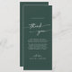 Cette carte de place boho chic vert émeraude vous remercie est parfaite pour un mariage minimaliste. Le design bohème moderne et moderne de la forêt de chasseurs, sombre et maussade, se compose d'une calligraphie rustique simple au style unique mais classique. Personnalisez votre carte de table de réception avec vos noms et une note attentive pour vos invités, votre famille et vos amis.