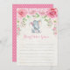 Carte de message de capsule temporelle mignonne & girly baby shower avec un adorable éléphant d'aquarelle entouré de jolies fleurs roses et de feuilles verts Le panneau de capsule temporelle correspondant se trouve ici : https://www.zazzle.com.au/pink_roses_elephant_time_capsule_1st_birthday_sign-228909703022301339