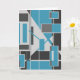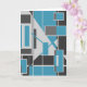 Une image d'art contemporain aux formes et lignes géométriques est présentée en gris et noir sur un arrière - plan turquoise dans un plan abstrait du métro, inspiré du style moderne du milieu du siècle.