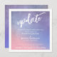 Cette conception comporte une police de script manuscrite moderne utilisée pour créer un graphique représentant le mot "update", grand et gras. Une couche subtile d'aquarelle a été placée en haut, ajoutant de la texture. Sous ce graphique, j'ai ajouté une autre image : un dégradé d'ombre aux teintes pastel violet, bleu et rose. Vous pouvez faire pivoter cette image pour différents effets, si vous le souhaitez. Vous pouvez également choisir de supprimer la couche d'aquarelle texturée pour un traitement de surface plus lisse. Pour ajouter un effet audacieux, j'ai placé une épaisse bordure blanche autour des bords de l'avant de la carte. Utilisez les champs modèles pour ajouter vos détails personnels et faire de ce design unique et moderne votre propre. Veuillez communiquer avec toute demande spéciale ou customiser de l'aide. // 100 //