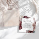Annoncez votre mariage avec cette carte carrée élégante "Save the Date" qui présente un arrangement floral aquarelle élégant dans des tons riches de bordeaux, rose et ivoire. La disposition carrée moderne donne à cette carte un bord contemporain, tandis que la texture aquarelle beige neutre au dos ajoute une finition chaude et romantique. Parfaite pour les mariages bohèmes, rustiques ou inspirés des jardins, cette conception offre un équilibre entre une beauté intemporelle et un charme moderne.
