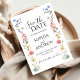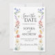 Avec cette élégante carte "Save the Date" magnifiquement conçue avec des fleurs sauvages aquarelles, annoncez votre grand jour avec style ! Des florales douces et romantiques dans un motif de fleurs sauvages donnent le ton à une célébration de mariage charmante et inspirée de la nature. Parfait pour les mariages rustiques, de jardin, bohèmes ou en plein air, ce design apporte une touche de beauté naturelle à votre annonce spéciale. Personnalisez facilement avec vos noms, date et détails pour le rendre vraiment vôtre.