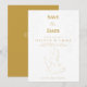 Carte classique de save the date avec un design élégant de colombe blanc et or. Une carte joliment pliée pour annoncer la date de votre mariage dans un style intemporel et raffiné. Imprimé à plat — sans gaufrage ni texture en relief. Entièrement personnalisable avec vos informations d'événement.