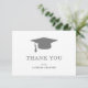 Carte de remerciements à plat classique avec un design simple et minimaliste avec un casquette gris avec le nom du diplômé en gras sur un arrière - plan blanc. Le côté arrière a votre message personnel ou vous pouvez supprimer le modèle si vous souhaitez écrire votre message à la main. Un design traditionnel avec une touche masculine, parfait pour un jeune diplômé.