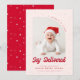 Célébrez l'arrivée de votre petit bout et son premier Noël avec cette carte de fêtes joyeuse présentant un cadre photo à arche moderne et des accents rouges ludiques. Parfait pour partager l'annonce de la naissance de votre bébé et répandre la joie festive avec vos proches. Montrez la photo la plus adorable de votre nouveau-né et personnalisez le nom, la date et les détails pour un effet personnel. Partagez votre paquet de joie et personnalisez la vôtre dès aujourd'hui.