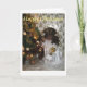 Carte de Noël avec petit ange noir devant l'arbre