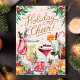 Célébrez la saison des fêtes avec cette carte de Noël vibrante et festive « Holiday Cheer » ! Comportant une superbe illustration aquarelle de délicieux cocktails de fêtes, garnis de canneberges fraîches, d'oranges et de cannes de bonbon, cette carte dégage de la chaleur et de la joie. Parfaite pour souhaiter de bonnes fêtes à des amis, à la famille ou à des collègues qui aiment un bon toast de fêtes. Avec son écriture élégante et ses touches de couleur, cette carte est le moyen idéal pour envoyer des vœux de Noël.