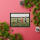 Carte de Noël avec écriture Joyeux Noël sur fond à carreaux navy et écriture en feuille d'or, ceci est la version horizontale de la carte que vous pouvez personnaliser avec vos détails. Voir plus dans la collection Plaid Merry.