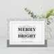 La carte de Noël noire, grise et blanche de TeeLofts présente une typographie moderne et audacieuse « Merry & Bright » superposée sur un esperluette gris clair comme éléments de design principaux. La bordure extérieure est une illustration graphique de feuillage de fêtes en gris et blanc. Il est facile d'ajouter les noms de votre famille sur le devant et une photo au verso daté. #Noël #Fêtes #CartesDeNoël