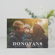 Cette élégante carte de Noël présente en bonne place le nom de famille de votre famille sur une photo pleine page accentuée de flocons de neige en véritable feuille d'or. Ajoutez votre lettre d'information familiale des fêtes à l'arrière, ou personnalisez et supprimez le texte pour un motif de flocons de neige.