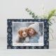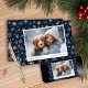 Prenez la magie de la saison avec notre carte de Noël photo de Fléau Bleu capricieux. Orné de flocons de neige bleus complexes qui dansent à travers la page, notre design comprend une grande zone pour votre photo de famille. C'est le choix idéal pour envoyer vos voeux de vacances ! Recherchez des modèles coordonnés dans notre collection de flocs de neige bleus et blancs!