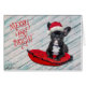 Un Boston Terrier mignon porte un chapeau de Père Noël rouge et blanc et repose sur un coussin rouge à dentelle noire taillé sur le devant de cette carte de vacances. Un arrière - plan de parquet blanc tient le texte "MERRY AND BRIGHT" en rouge. L'intérieur de la carte contient trois champs de texte que vous pouvez customiser. Faites-le dire ce que vous voulez !