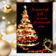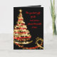 Carte de Noël chrétienne avec un beau sapin de Noël ruban rouge et or sur un fond noir élégant. Cette belle carte de Noël chrétienne noire rouge et or est facilement personnalisable avec votre nom ou le nom de votre famille, ou vous pouvez la laisser telle quelle et ajouter votre message manuscrit à l'arrivée.