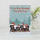 C'est le moment le plus endiablé de l'année ! Ces adorables dachshunds noirs et bronzés portant des chapeaux santa avec un arrière - plan d'hiver enneigé devraient faire sourire n'importe qui. Vous pouvez également customiser le message au verso de la carte !