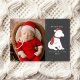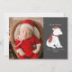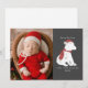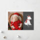 Illustration d'un bébé manchot portant un chapeau et une écharpe de père Noël. Personnalisez le nom, l'année et la photo.
