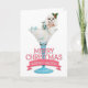 Cette carte de Noël a un mignon caniche blanc dans un verre de vin et des messages de Noël.