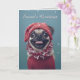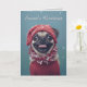 Cette jolie carte de Noël comporte un adorable chien de carlin habillé pour la neige en casquette rouge, muffler et manteau. Vous pouvez customiser à la fois l'accueil sur le devant et le message à l'intérieur de la carte à votre goût.