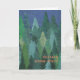 Une carte de Noël chic avec une forêt d'arbres de Noël dans la neige, d'une conception de papier peinte à la main de collage de Judy Adamson. La salutation sur l'avant, dans lettrage orange/rose, est Joyeux Noël en gaélique irlandais et vous pouvez personnaliser le message intérieur.