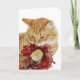 Minou tigré orange jouant avec la carte de voeux rouge de Noël de photo de guirlande de Noël