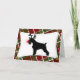 La carte de Noël de Schnauzer d'amusement a la silhouette snarky de race de chien, avec des andouillers de renne et un nez rougeoyant rouge lumineux. L'arrière - plan est un plaid gai de vacances avec des rouges et des verts. L'intérieur lit, "souhaitant vous et votre famille par saison des vacances merveilleuse !" Personnalisez le message à vos propres facilement. Cartes de Noël mignonnes d'amoureux des chiens.