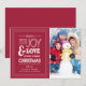 Carte de Noël de typographie élégante blanche et rouge Amour et Joie pour les fêtes.