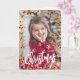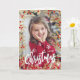 Une carte festive de Noël photo de Noël avec un cadre élégant de branches de mistletoe doré et de feuilles et de petits fruits rouges. Personnalisez la photo à l'avant de la carte avec une photo de votre famille, des enfants ou d'un animal de compagnie. Et le rouge avec des branches de faux vers dorés cadre de photo couvrira votre image de Noël. La typographie blanche avec "Joyeux Noël" donne un aspect festif à la carte de vacances. Ajoutez votre texte personnel et créez une belle carte de vacances personnalisée avec 1 photo.