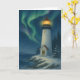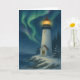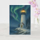 Apportez des merveilles côtières à vos salutations de vacances avec cette carte de Noël élégante. Sous l'aurora borealis, un phare déneigé brille, avec une verdure festive qui ajoute une chaleur saisonnière.