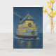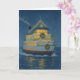 Célébrez les vacances avec une touche de charme côtier. Cette carte de Noël festive est ornée d'un bac classique orné de lumières à cordes brillantes et de couronnes vertes tandis qu'elle navigue dans les eaux glacées de l'hiver par une nuit enneigée.