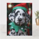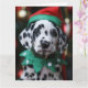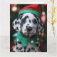 Le chiot dalmate, habillé comme l'un des elfes de Père Noël, vous souhaite un Noël à la mode et espère que vous avez un Nouvel An heureux et heureux.