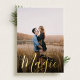 Une conception simple mais luxueuse de carte de vacances comportant vos photos, un message personnalisé et la phrase « Créons la magie des fêtes »