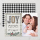 Carte de Noël de style rustique fermier. Le texte en bas est personnalisable pour votre propre message. Deux options pour le verso avec un motif en bois de shiplap ou en carreaux de plaid de bison.