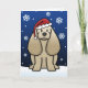 Envoyez des cartes de Noël Cocker Spaniel à tous vos amis amoureux des animaux cette année! Un mignon dessin de chien sportif kawaii est assis sur la neige fraîchement tombée, portant un casquette Père Noël, tandis que des flocons de neige dérivent doucement tout autour de lui. A l'intérieur, il y a aussi des flocons de neige et on peut lire : "Joyeuses fêtes !" Vous pouvez personnaliser le texte à n'importe quel message.