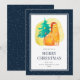 Bleu amusant Carte de Noël Joyeux avec une aquarelle illustration d'un chat gras portant un casquette du Père Noël. Personnalisez facilement cette carte de vacances bleu aquarelle avec votre nom de famille.