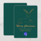 Elégante carte de voeux de Noël à plat de couleur turquoise, avec une parties scintillant d'or à l'air de cerf stylisé, sur la moitié supérieure de la carte. Parties scintillant d'or apparence texte graphique lecture Joyeux Noël, décore la moitié inférieure de la carte Tan texte personnalisé prêt à personnaliser avec le nom de votre entreprise et une zone de logo est prêt à remplacer par le logo de votre entreprise.