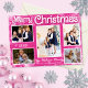 Arrière - plan rose chaud avec des flocons de neige blancs lunaires font pour une carte de Noël unique cette saison. Cette carte de Noël a de la place pour 5 belles photos. La typographie est également en blanc pour personnaliser avec le nom de votre famille, les prénoms et l'année.
