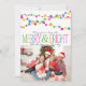 Cette carte photo moderne de Noël est dotée de lumières à cordes multicolores et de l'expression populaire "Joyeux et lumineux". Incluez votre photo de famille pour customiser la carte. La carte de vacances moderne et fantaisiste parfaite à envoyer à votre famille et à vos amis.