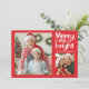Envoyez des voeux de vacances à votre famille et à vos amis avec cette carte à plat de Noël personnalisable et joyeux avec le texte "Joyeux et lumineux" contre un arrière - plan rouge vif. Personnalisez en ajoutant vos photos et textes préférés.