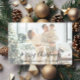 Envoyez des voeux de vacances chaudes avec cette photo moderne défraîchi Joyeux Noël carte. Le design présente votre photo personnelle doucement fondue dans un arrière - plan festif d'ornements dorés, de pinecones et de branches à feuillage persistant, créant un look cosy et élégant. "Joyeux Noël" est écrit dans un script noir élégant à travers le bas avec l'espace ci-dessous pour votre nom de famille. Un beau choix pour partager votre moment familial préféré tout en envoyant les salutations de saison à des amis et à des proches.