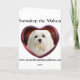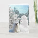 Cette carte de Noël présente Snowdrop, un doux petit maltais assis dans la neige avec un bonhomme de neige.