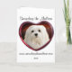 Cette Carte de Noël présente Snowdrop, un doux petit maltais assis sur une chaise longue dans une pièce où le Père Noël se défait le matin de Noël.