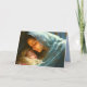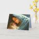 Carte de Noël Mère et Bébé - La mère vierge tenant son fils bébé, Jésus, cette nuit sainte. Les couleurs sont bleu clair, crème avec une touche de gris.