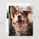 Carte de Noël photo moderne avec un design simple et minimal avec le mignon accueil "Furry and Bright" dans un script élégant sur une photo de votre chien de compagnie. Le dos a un collage photo avec trois photos verticales avec votre message personnalisé en noir et blanc.