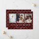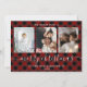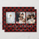 Carte de Noël à carreaux rouges avec 3 de vos photos. Facile à personnaliser avec vos noms et l'année.