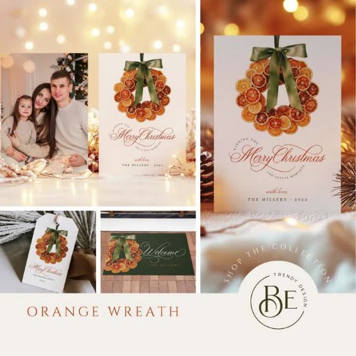 Envoyez une joie festive avec notre carte de Noël Orange Wreath Photo Holiday, avec un design magnifiquement artisanal d'une couronne d'orange séchée accentuée par un arc vert sage. Cette carte allie un charme rustique à une élégante simplicité, parfaite pour ceux qui apprécient les détails d'inspiration nature. Avec son esthétique cosy mais chic, c’est un choix intemporel pour répandre la chaleur et la joie des vacances. Customisez-le avec votre photo au dos.
